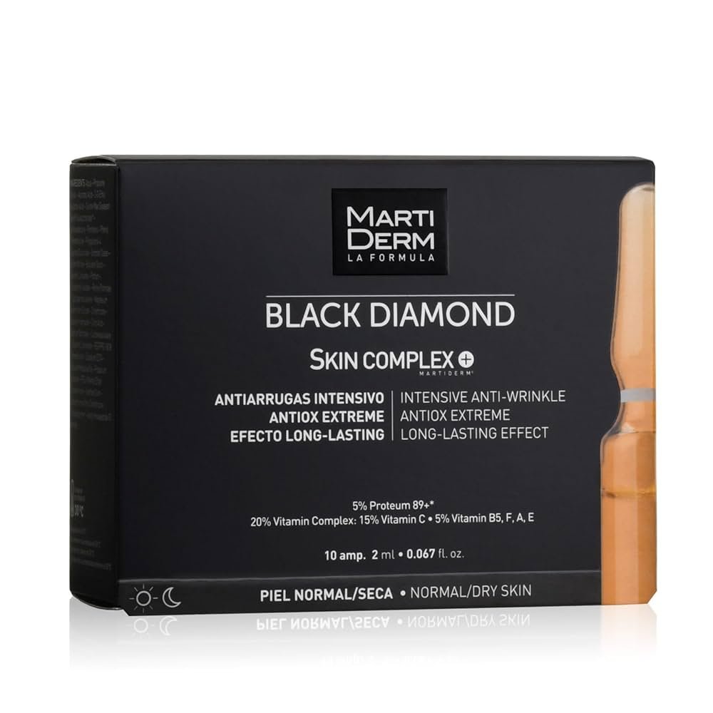 Black Diamond (antiedad intensivo): tecnologías avanzadas para arrugas estáticas, dinámicas y gravitacionales; incluye referencias como Skin Complex+ (antioxidante/energizante) y Night Renew (renovación nocturna con suave efecto peeling). MartiDerm+2Skin Color+2