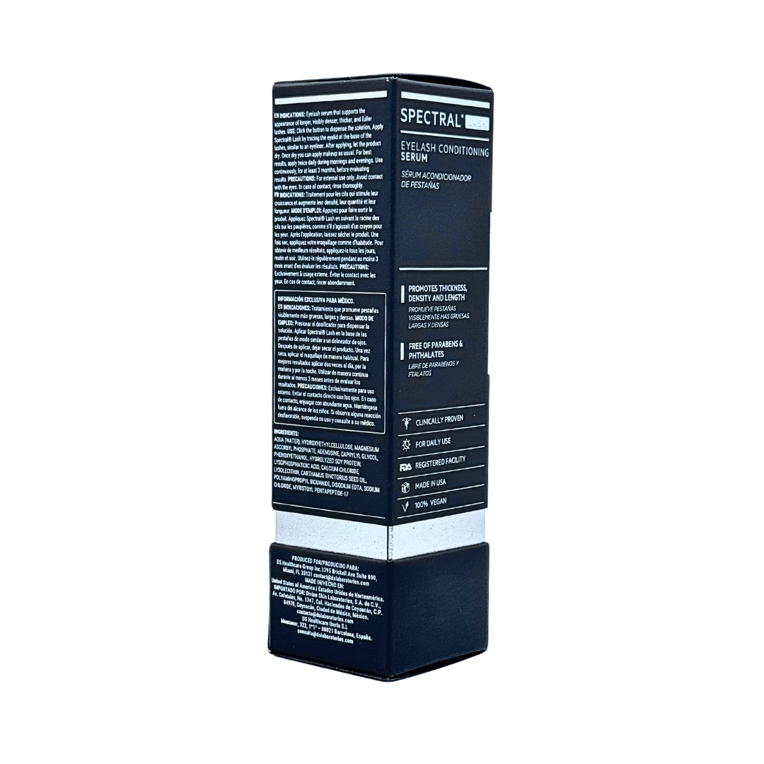 Presionar el dosificador para dispensar la solución. Aplicar Spectral Lash en la base de las pestañas de modo similar a un delineador de ojos. Después de aplicar, dejar secar el producto. Una vez seco, aplicar el maquillaje de manera habitual. Para mejores resultados aplicar dos veces al día, por la mañana y por la noche. Utilizar de manera continua durante al menos 3 meses antes de evaluar los resultados.