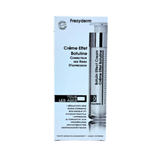BOTULIN EFFECT CREAM de FrezyDerm Una crema que reduce las líneas de expresión y las arrugas estáticas del rostro y el cuello, incluidas las de la frente, las patas de gallo, las de la boca y la nariz. Extractos vegetales con propiedades relajantes que producen un efecto botulínico, suavizando las arrugas en profundidad y en tamaño. Su fórmula nutre, cura e hidrata en profundidad, disminuyendo las arrugas y los signos del envejecimiento para una piel revitalizada.