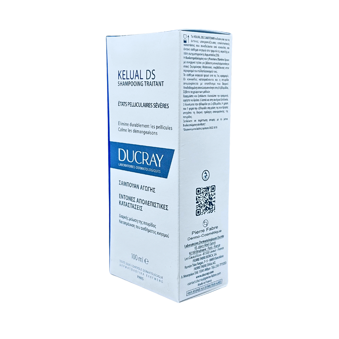Ducray Kelual DS shampoo  El shampoo auxiliar tratante  está recomendado para personas con caspa recurrente con comezón intensa y eritema (enrojecimiento de la piel) o en cueros cabelludos con tendencia a dermatitis seborreica.