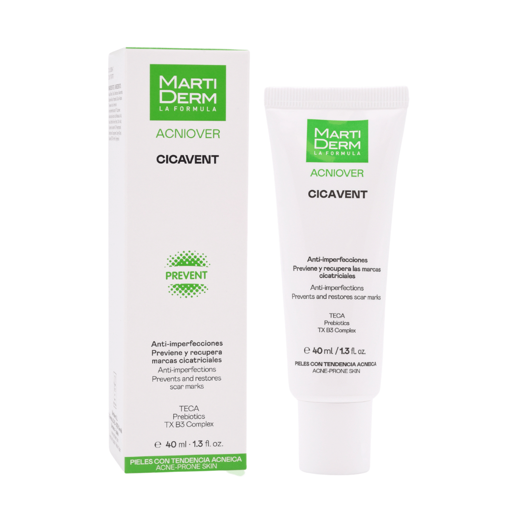 MartiDerm Acniover Cicavent 40 ml recupera y previene las marcas post-cicatriciales. Las pieles con tendencia acnéica pueden ser propensas a la aparición de marcas y cicatrices después de los episodios inflamatorios.