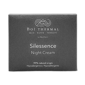 Por eso Boi Thermal Silessence Night cream 50 ml, con agua hipotónica rica en sílice, extractos de tamarindo y lirio blanco, y aceite de argán, repara, hidrata, pero sobre todo, nutre. Y por eso su textura es más untuosa que Silessence Day Cream, la crema de día.