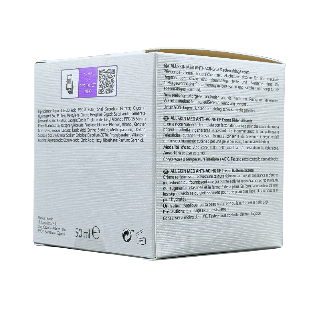 Replenishing Cream de cantabria labs crema nutritiva formulada con nuestra tecnología patentada SCA®PRO rica en factores de crecimiento que proporcionan una potente actividad regeneradora, redensificante y activos tensores que incrementan la firmeza y la elasticidad de la piel.
