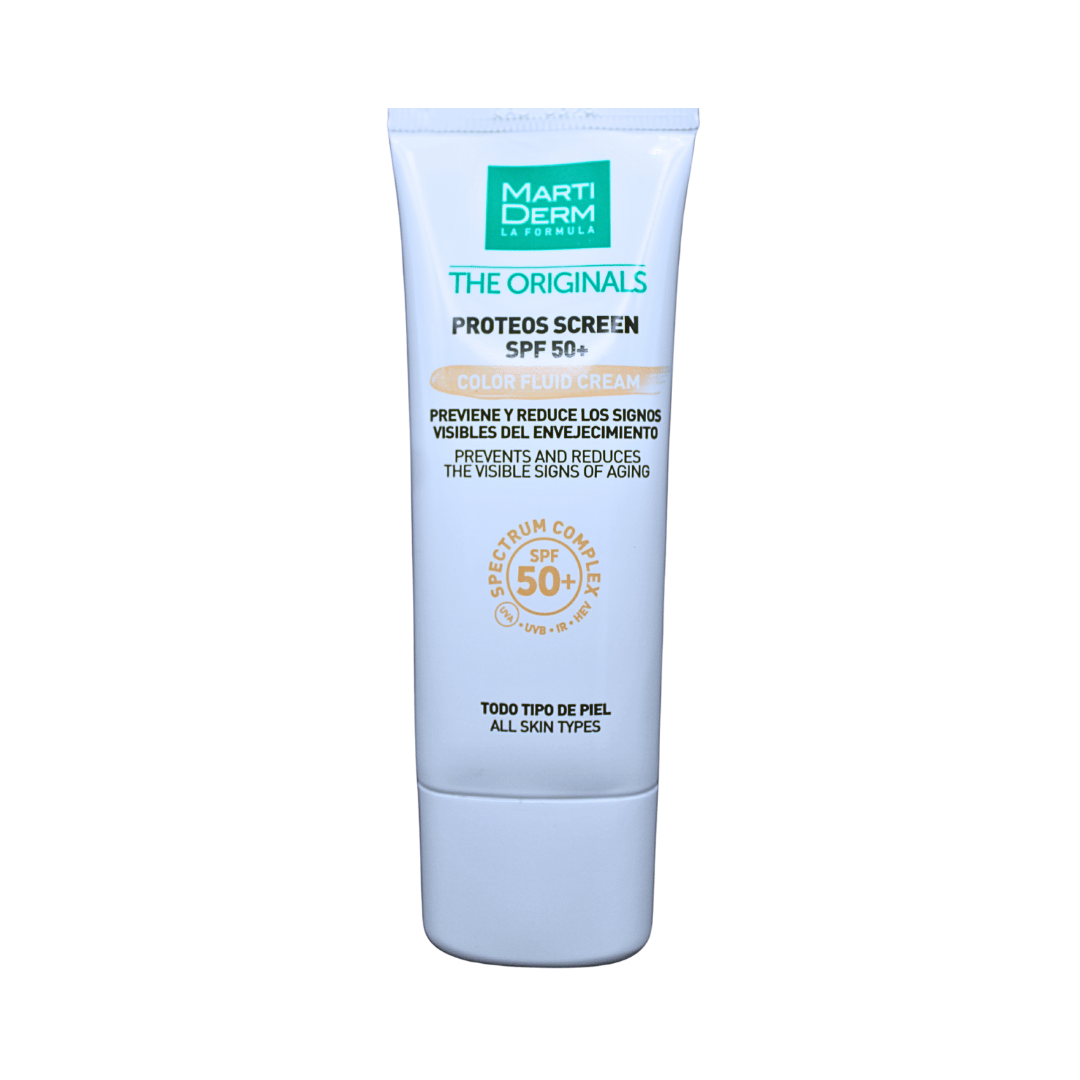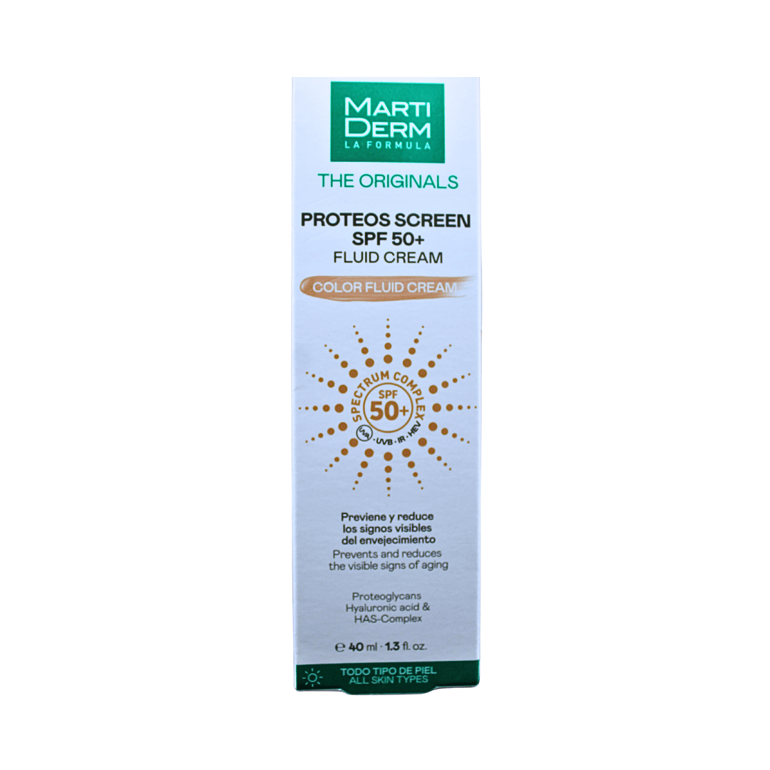 MartiDerm The Original Proteos Screen SPF 50+ 40 ml Crema facial fluida con FPS 50+ de fácil absorción que previene y ayuda a reparar los signos del envejecimiento cutáneo prematuro.