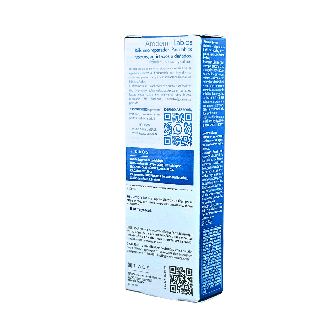 INDICACIONES: Atoderm Labios, es un bálsamo que ayuda a reparar los labios resecos o agrietados.