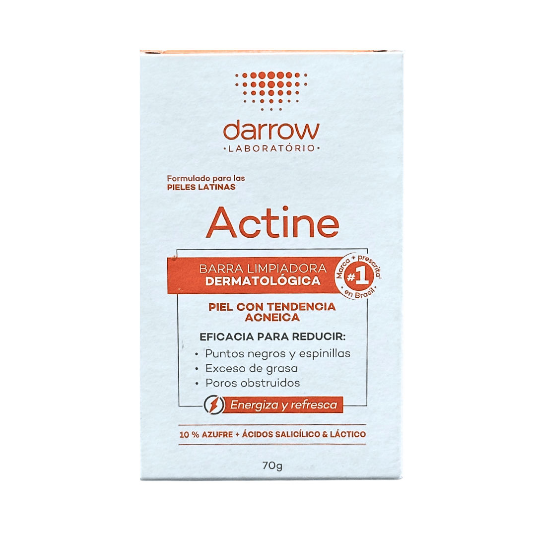 Comprueba los beneficios de Darrow Actine Barra Limpiadora con Azufre al 10%, Ácido salicílico y Ácido láctico.