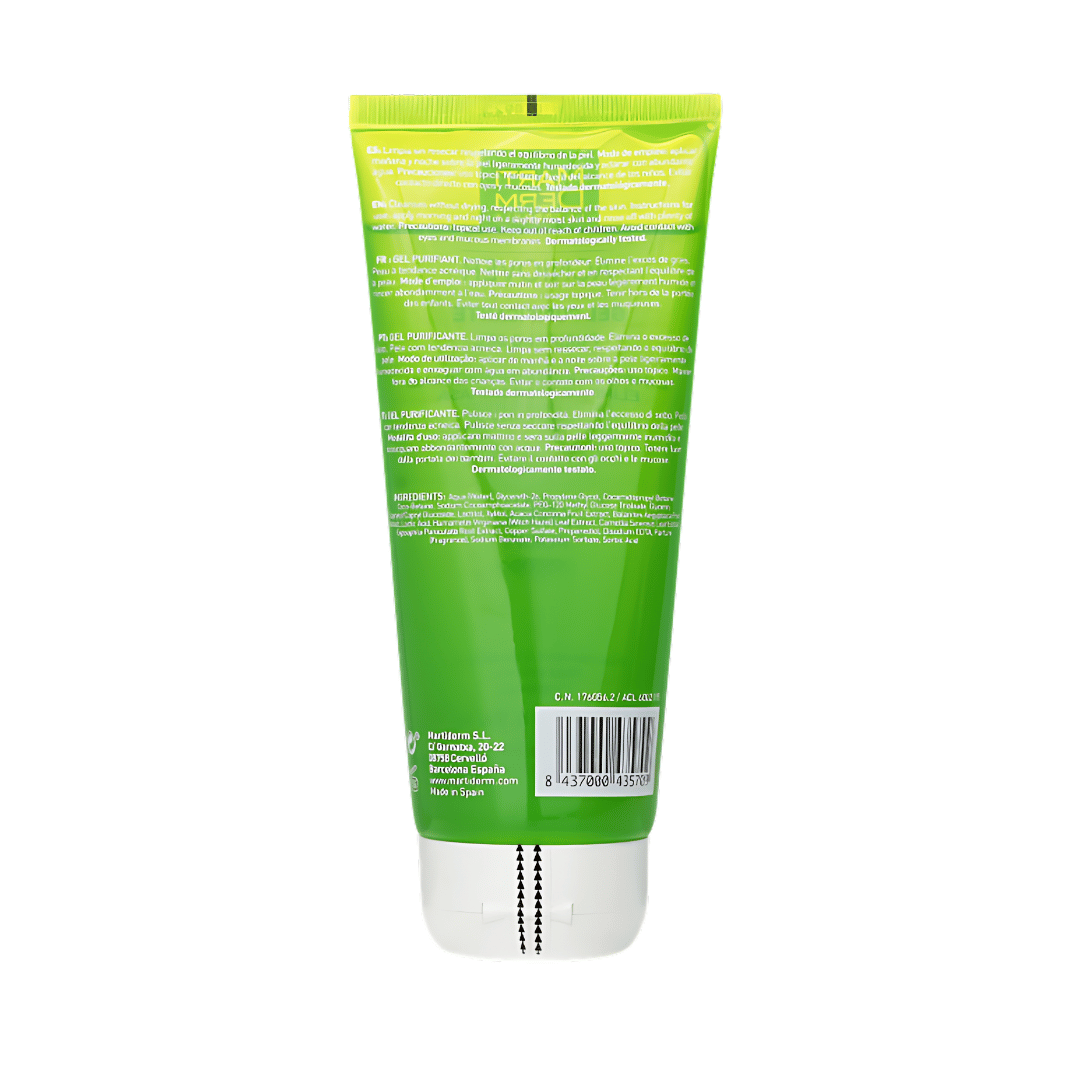 MartiDerm Acniover Gel Purificante Purifying gel 200 ml limpia y seborregula los poros en profundidad, elimina el exceso de grasa y equilibra la flora cutánea. No reseca y respeta el pH de la piel.
