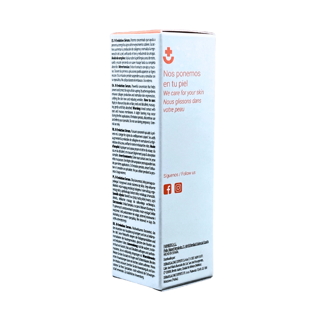 INDICACIONES: Asimismo, R-Evolution es un serum que ayuda a prevenir y corregir los signos del envejecimiento. Sus activos aumenta la producción de colágeno regenerando la piel, unificando el tono y reduciendo las arrugas.