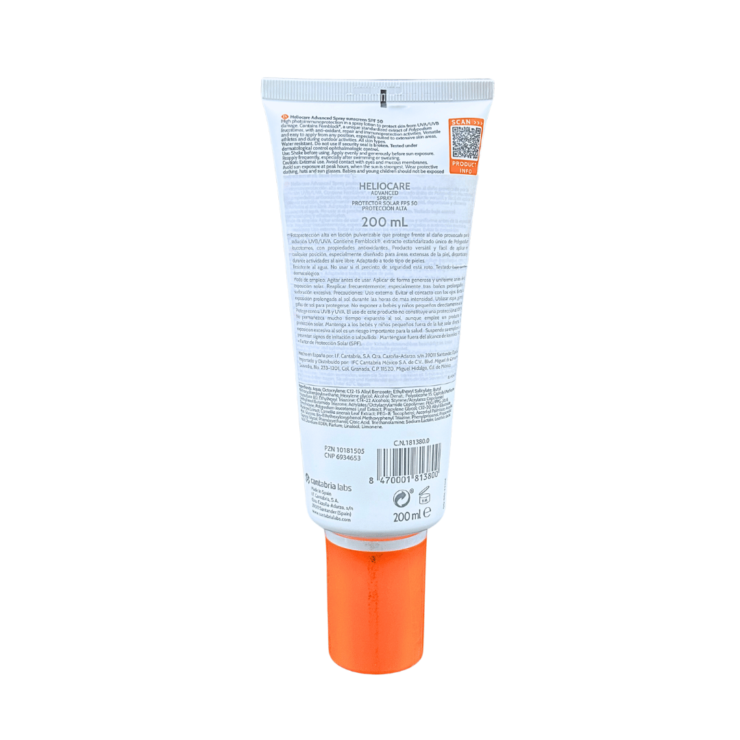 Cantabria Labs Advanced Spray Es un producto ligero de rápida absorción, resistente al agua y fácil de extender es la mejor opción para la protección de la piel en todo el cuerpo.