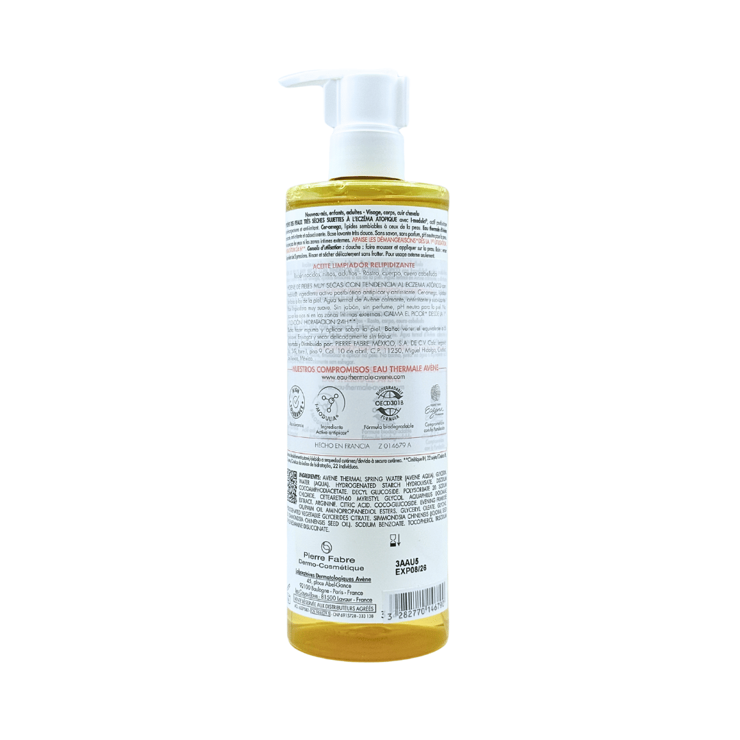 Avene Xeracalm A.D Aceite limpiador relipidizante limpia suavemente y alivia la piel muy seca con tendencia a la dermatitis atópica y al picor.