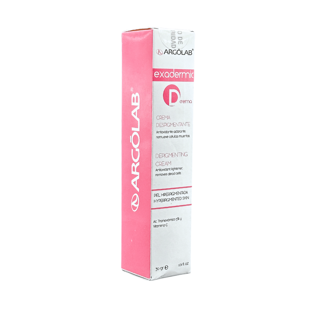 Argolab Exadermic D crema despigmentante, antioxidante aclarante. Remueve células muertas.