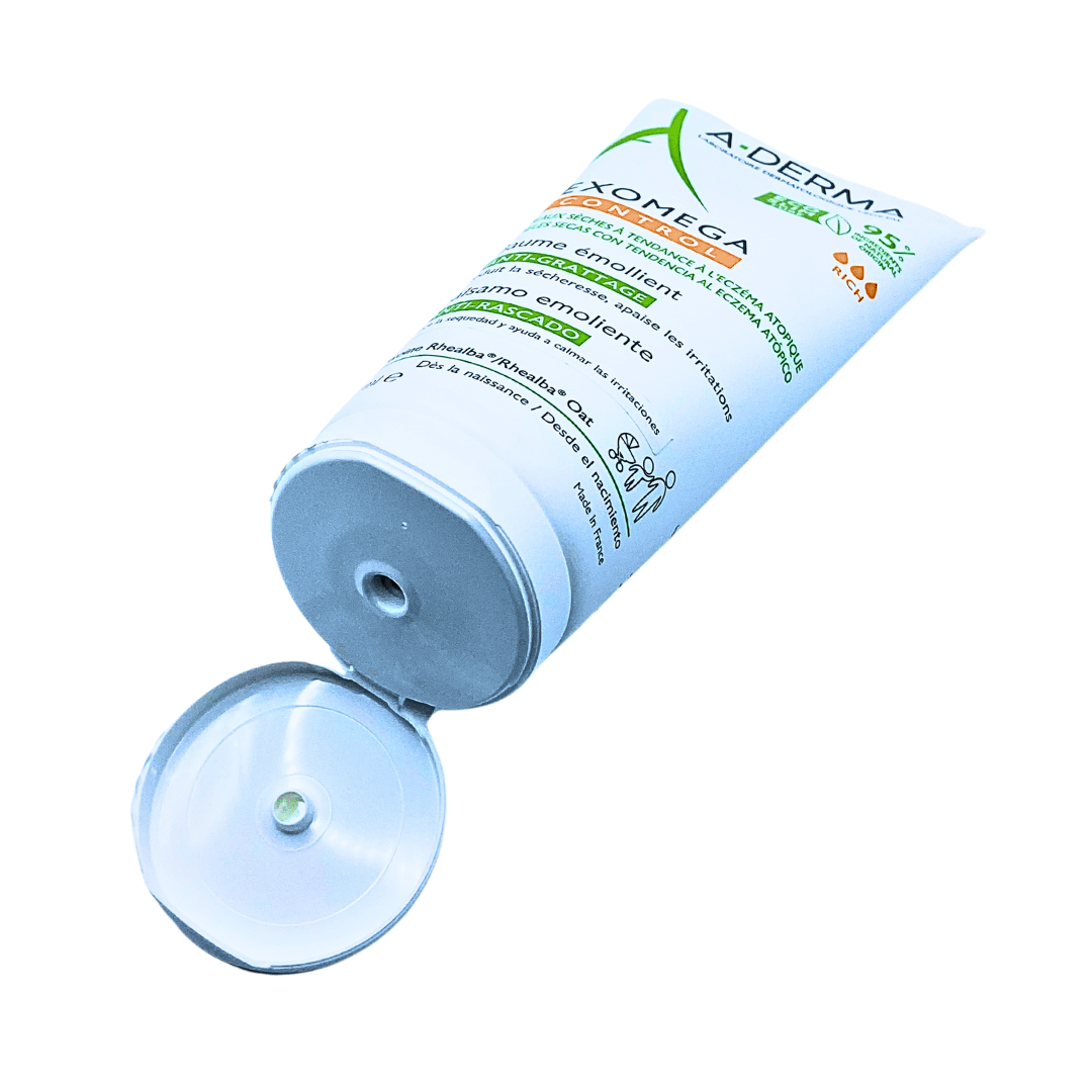 A-Derma Exomega Control Balsamoemoliente anticomezón calma la comezón y hace que los picos de irritación sean menos frecuentes, a la vez que reduce el enrojecimiento de las pieles secas con tendencia al eccema atópico.