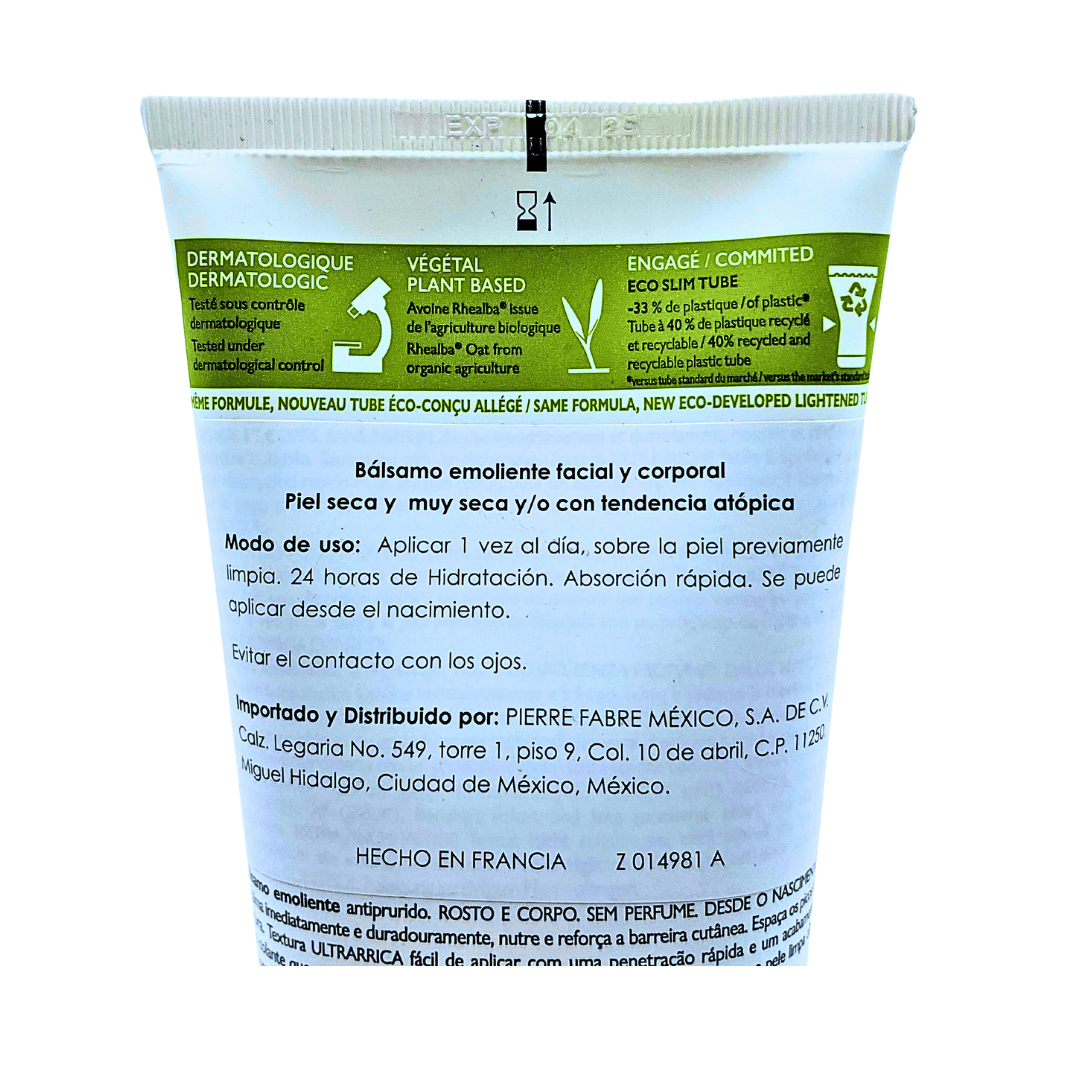 Su eficacia de 360° también reduce la sequedad, fortalece la barrera cutánea y ayuda a reequilibrar el microbioma. Un bálsamo nutritivo con una textura ultraenriquecida y no pegajosa para una triple acción calmante en una sola aplicación al día.Una fórmula a base de extracto de semillas de Avena Rhealba, con un 95 % de ingredientes de origen natural y sin perfume, que se puede usar desde el nacimiento.