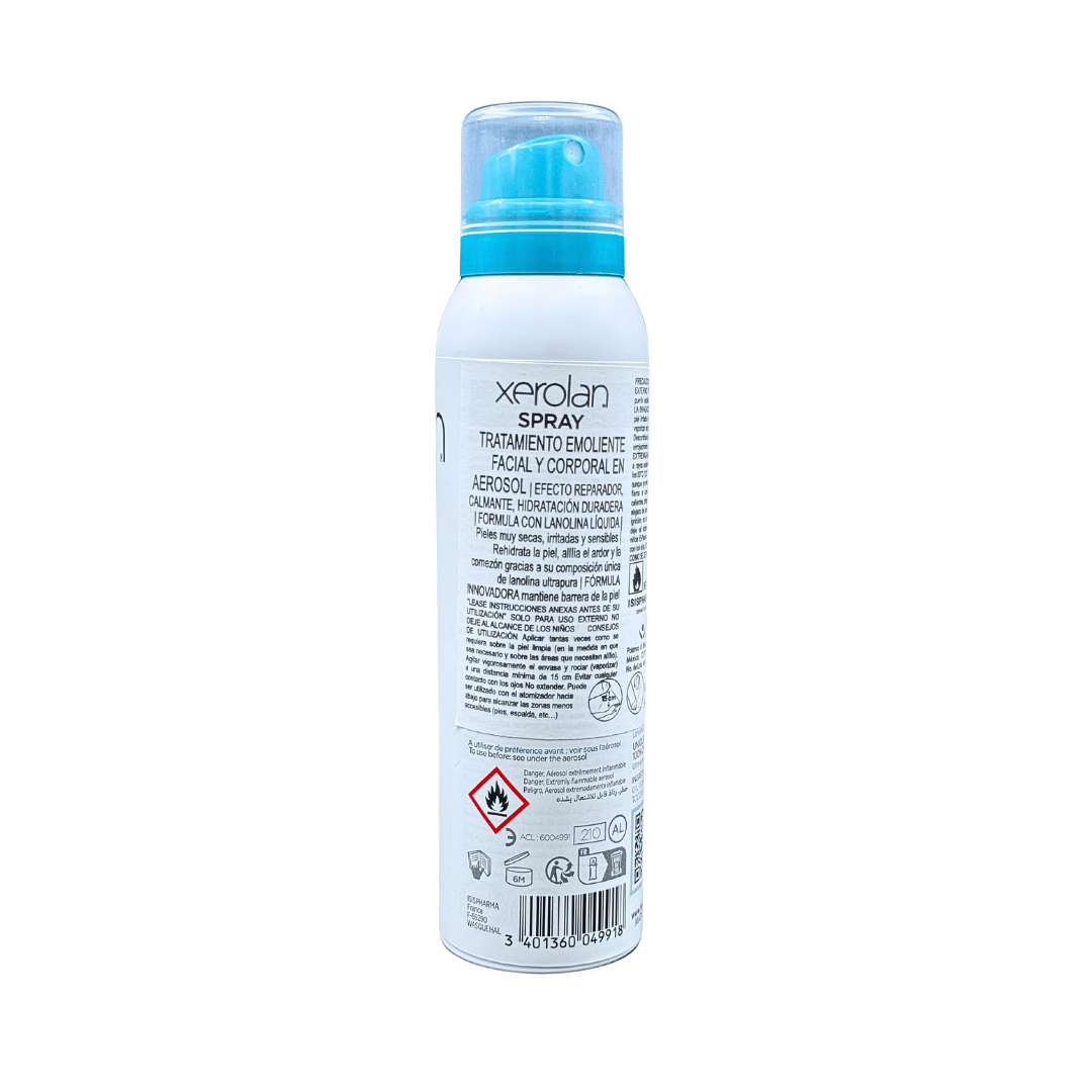 Isispharma Xerolan Spray La lanolina, reconocida desde la antigüedad por sus propriedades reparadoras y suavizantes excepcionales, aporta todos los ingredientes esenciales que la piel necesita para repararse e hidratarse.