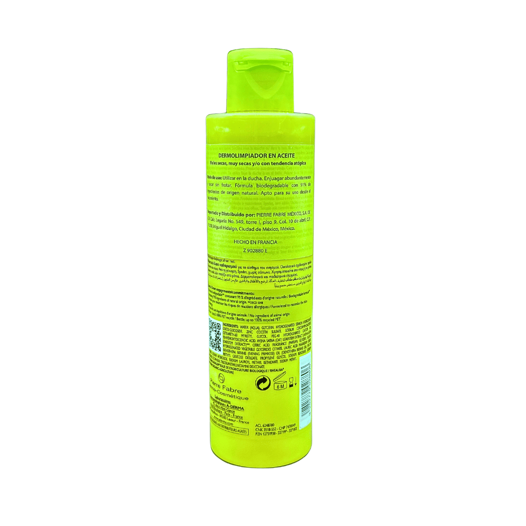 A-Derma Exomega Control Emoliente El Aceite limpiador emoliente es apto para su uso desde el nacimiento ya que limpia, nutre y calma la piel seca con tendencia atópica gracias a su fórmula BIODEGRADABLE* con un 91 % de ingredientes de origen natural.