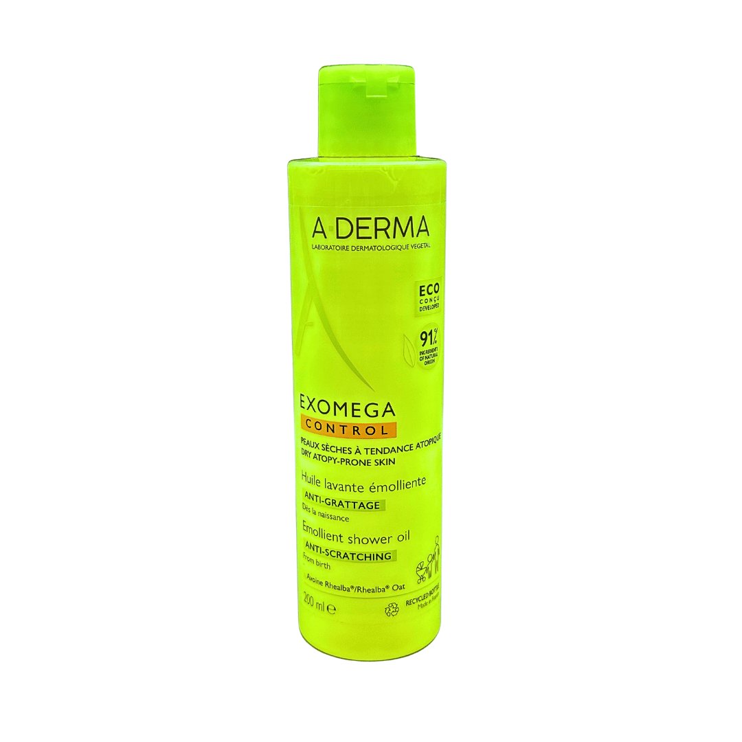 A-Derma Exomega Control Emoliente de A-Derma El Aceite limpiador emoliente es apto para su uso desde el nacimiento, ya que limpia, nutre y calma la piel seca con tendencia atópica en el 100 % de los casos gracias a su fórmula BIODEGRADABLE* con un 91 % de ingredientes de origen natural.