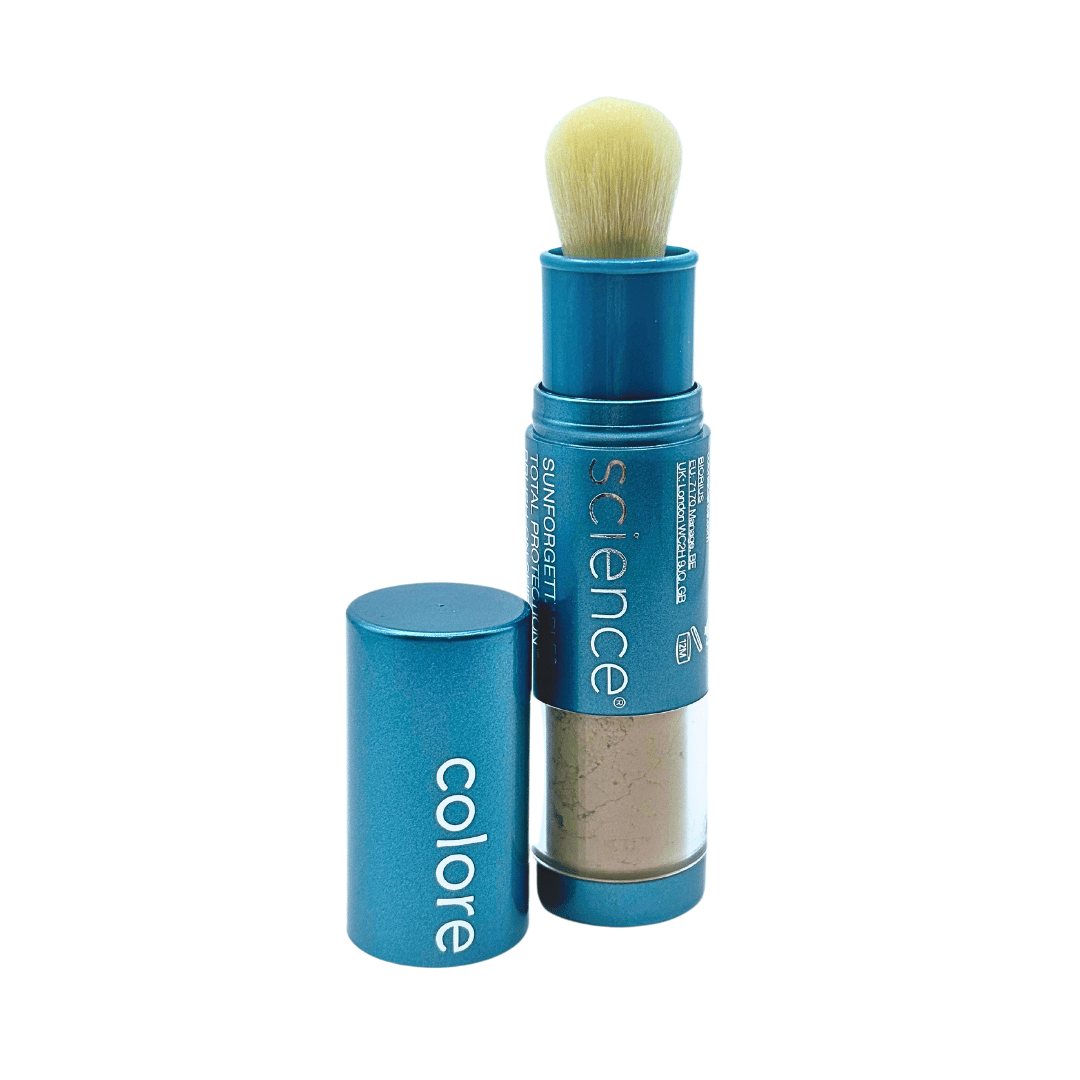 Sunforgettable® Total Protection™ Brush-On Shield SPF 50 de Colorescience este protector solar en polvo totalmente mineral brinda protección completa en una brocha fácil de aplicar y volver a aplicar sobre la marcha. Use este polvo solo o sobre maquillaje para obtener una protección SPF 50 diaria. Además, es resistente al agua y al sudor hasta por 80 minutos y va más allá de los rayos UV con luz azul (HEV), contaminación y defensa infrarroja contra los signos prematuros de envejecimiento y daño de la piel .