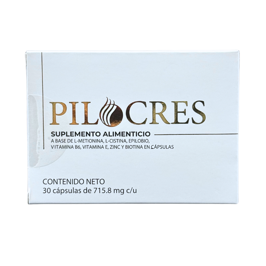 Pilocres Suplemento Alimenticio que contribuye a evitar la caida de cabello ya sea por alopecia androgénica y por efluvio telogeno.
